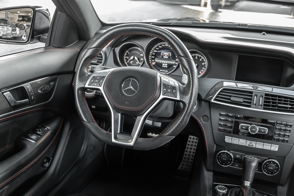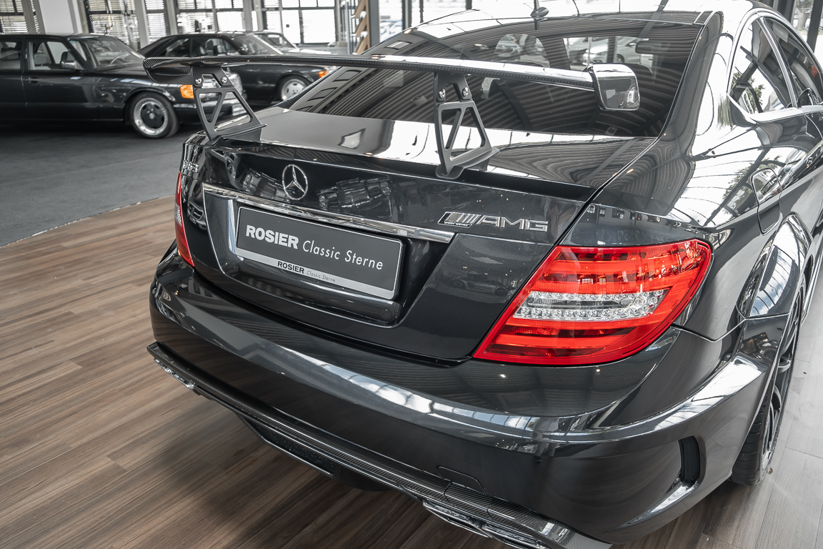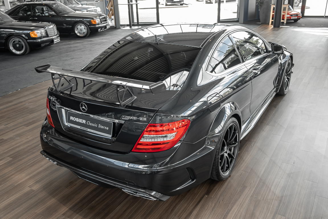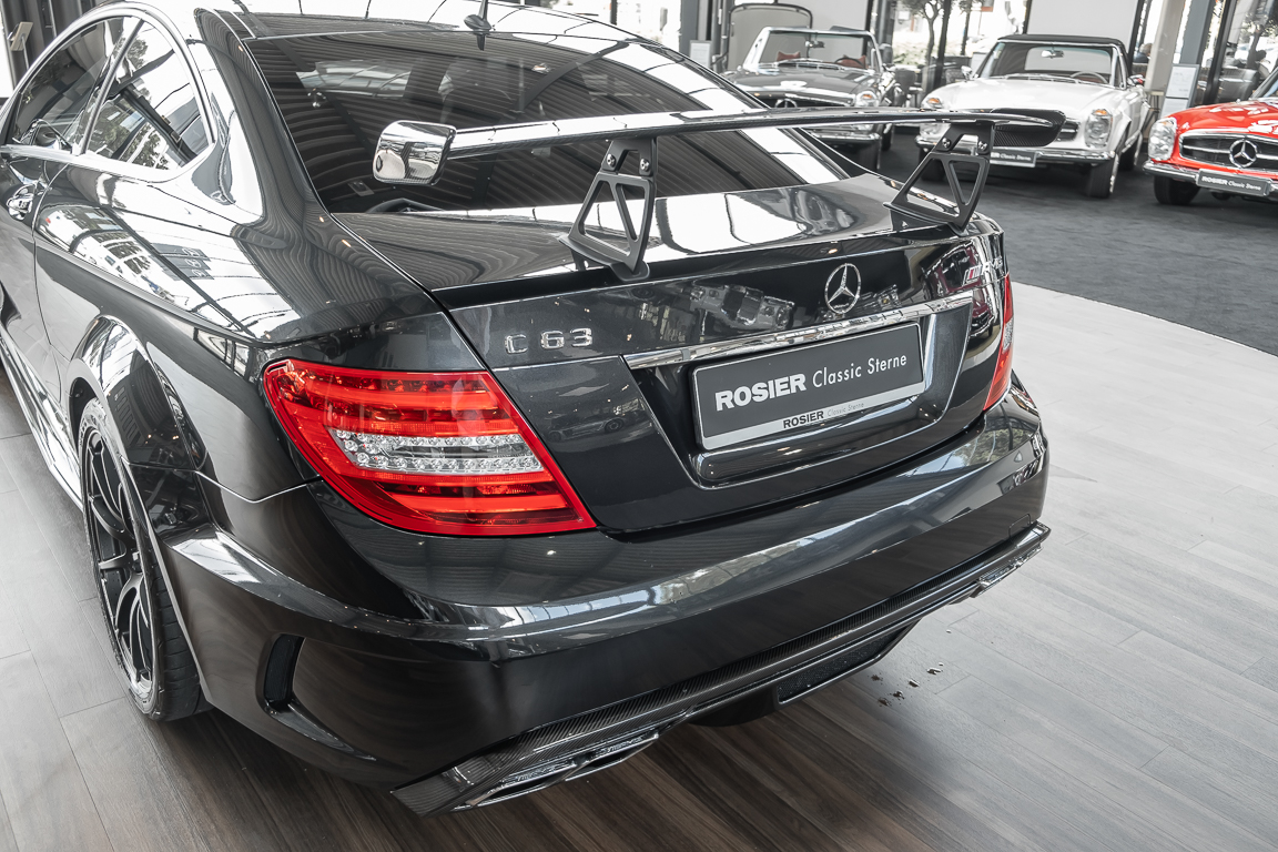Wir freuen uns, Ihnen dieses C 63 AMG Coupé in der seltenen Black Series Ausführung anbieten zu dürfen. Als höchste Ausbaustufe der Baureihe 204 schöpft der Black Series 517 PS aus 6,3 Liter Hubraum. Die Emotionen, die dieser letzte echte AMG Sauger weckt, sind nur schwer Worte zu fassen. Die Sonderlackierung in Schwarz Metallic in Kombination schwarzem Leder und roter Ziernaht steht diesem Black Series wie ein Maßanzug. Das Fahrzeug ist komplett gewartet und wird mit frischer HU/AU an seinen neuen Besitzer übergeben. Nutzen Sie diese besondere Gelegenheit und erfahren Sie den Mythos dieses Black Series.