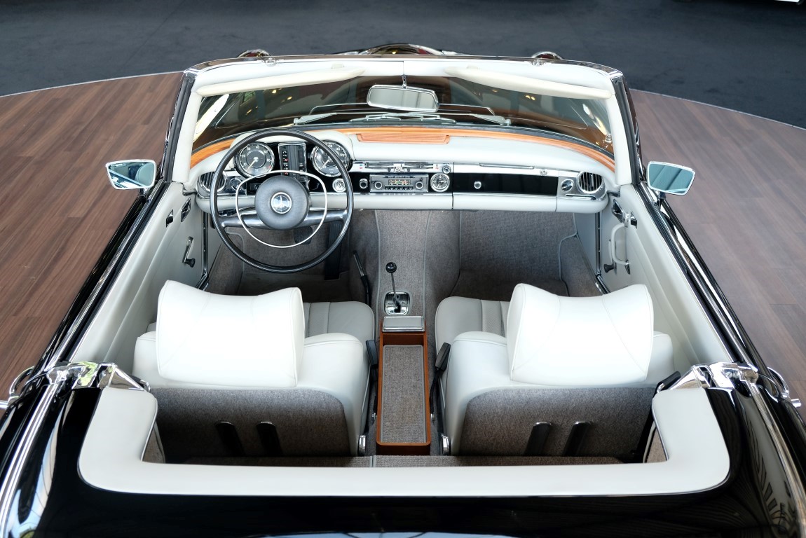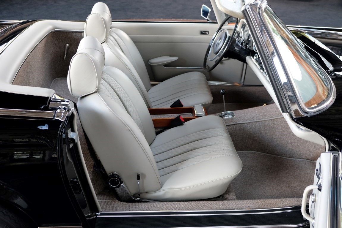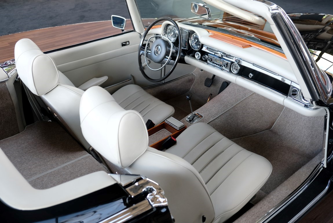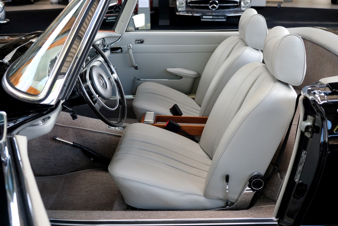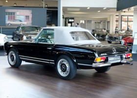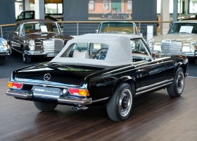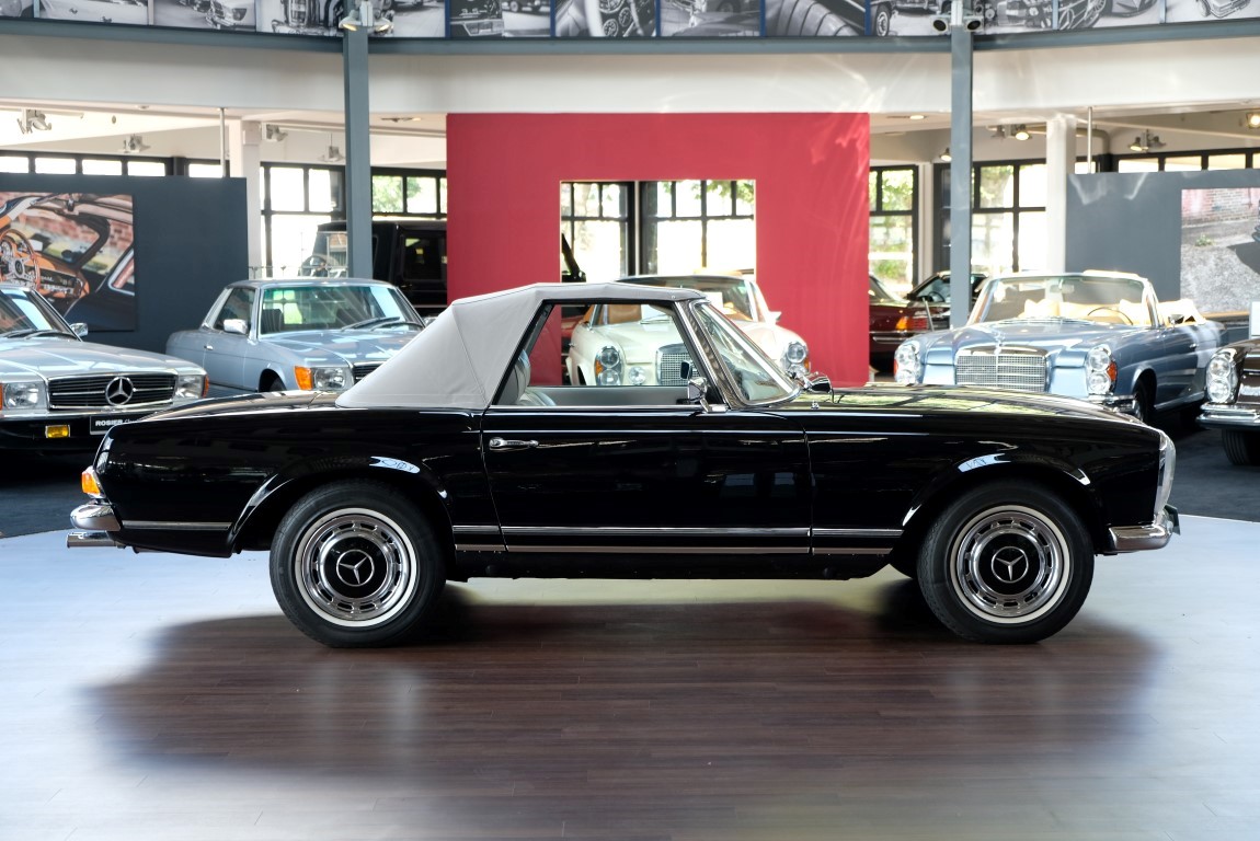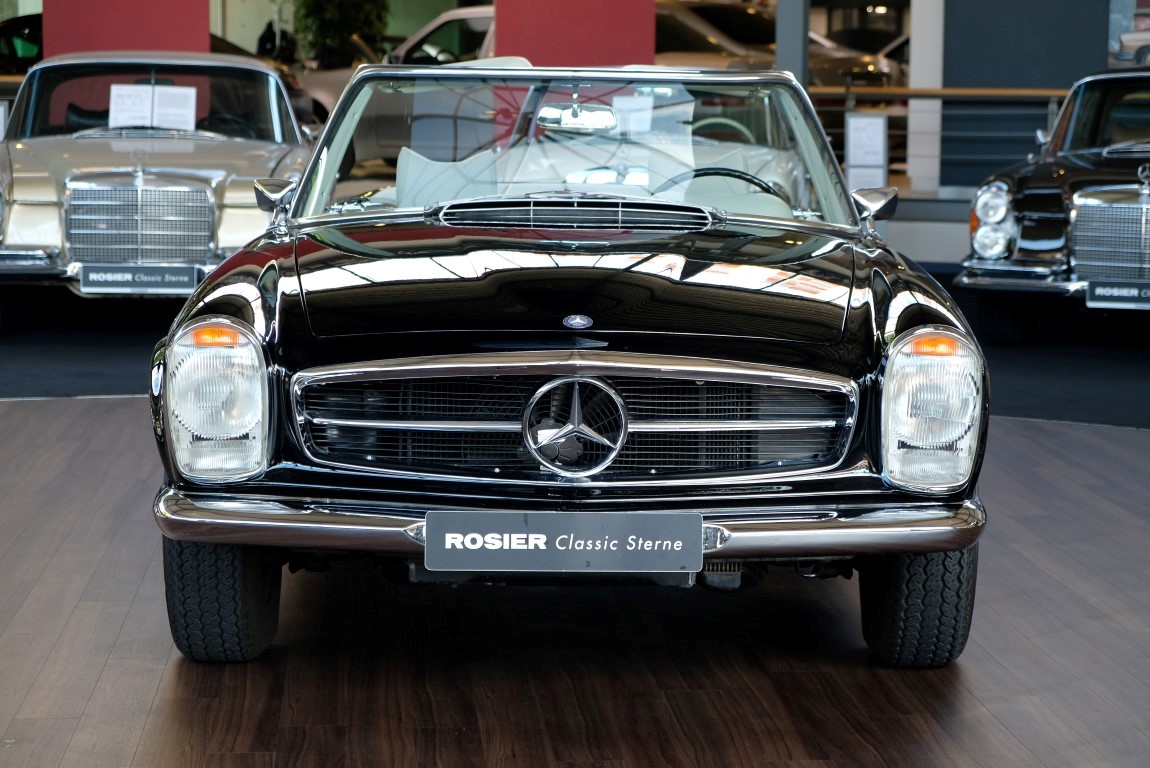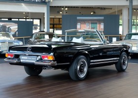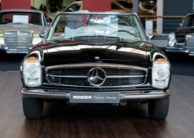 They were just around 70 years old and wanted to fulfill a long-cherished dream.They had a lot of fun at the pagoda. You kept the pagoda for about 12 years and did not give it until you decided to move to a retirement home. So the car came to Germany, to Rosier Classic sterne in Oldenburg. Here the car was subjected to extensive restoration, in the scope of which the car was completely disassembled and rebuilt. The technique has been revised and a new paint applied. When the car was completed in 2013, he found a new home in the high-quality collection of a long-standing customer of the house. Now that the collection was supplemented by another high-quality classic, had to give way to space of one of the existing vehicles. We had the choice and opted for the black 280 SL pagoda. A dream car that will surely find a new home quickly.