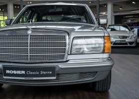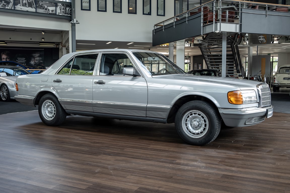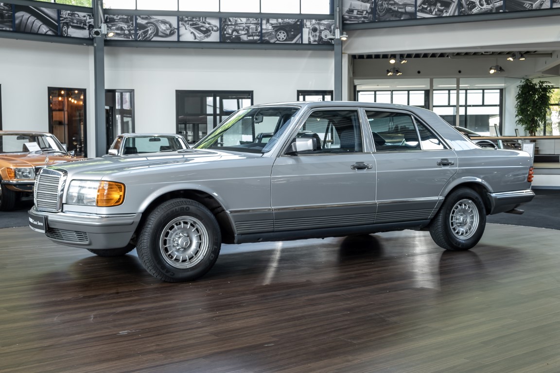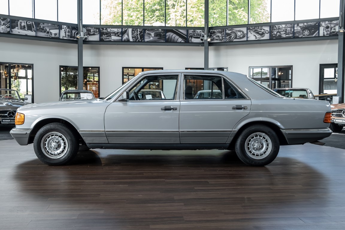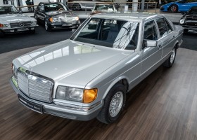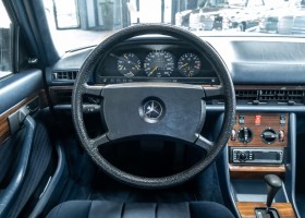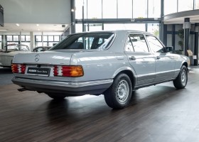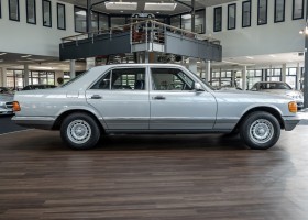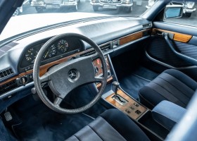 A beautiful 380 SE from the coveted 126 series in astral silver metallic in combination with a blue Interioer from the early 1983 model year is on offer. The cultivated and still bursting with power, the V8 moves the almost 1.6 tonnes unladen weight in all situations in life without any effort. The mileage is comprehensible and, according to the value appraisal, corresponds to the actual mileage. In the summer of 2019, the vehicle received a new transmission in our company. The great engine, a retrofitted KAT and the great driving folding make this 380 SE an excellent Dailydriver.