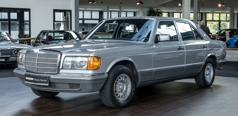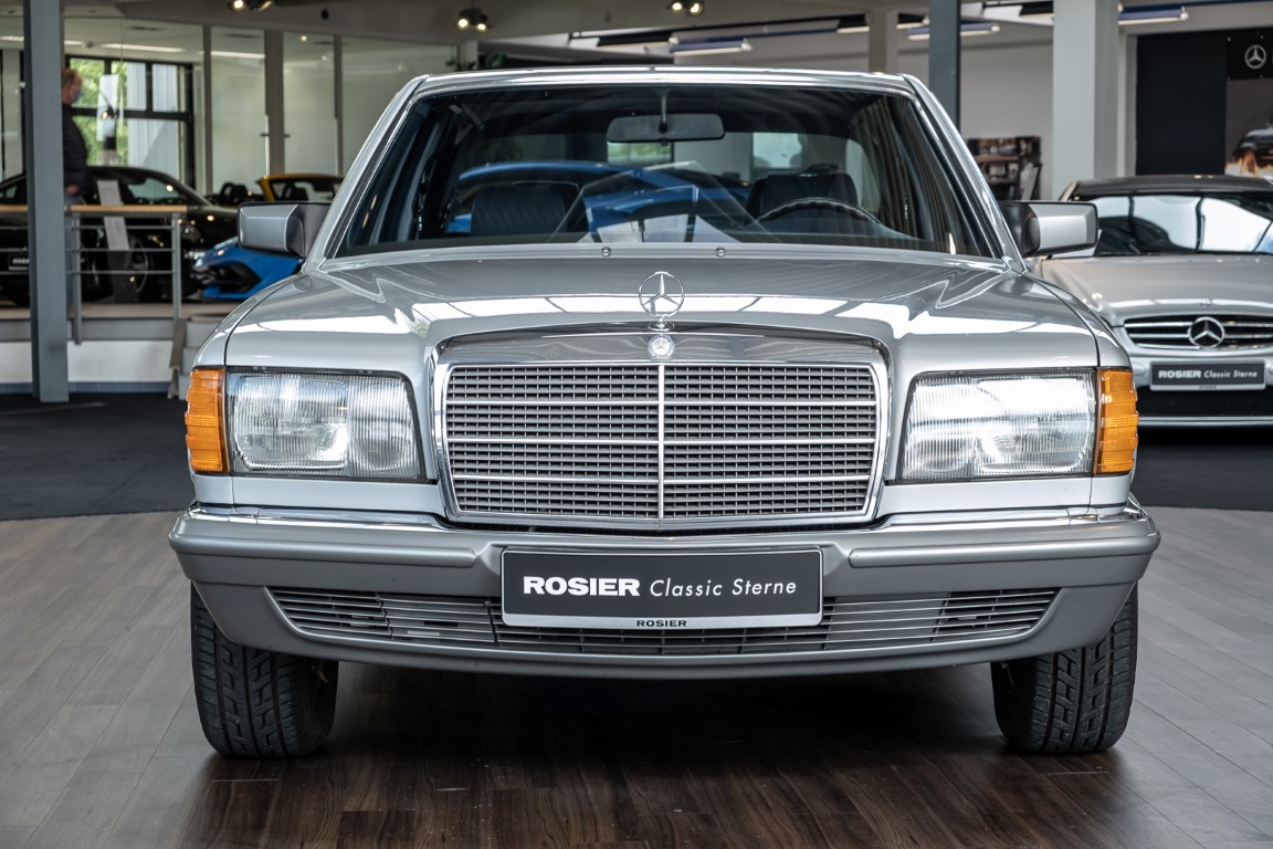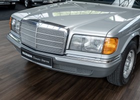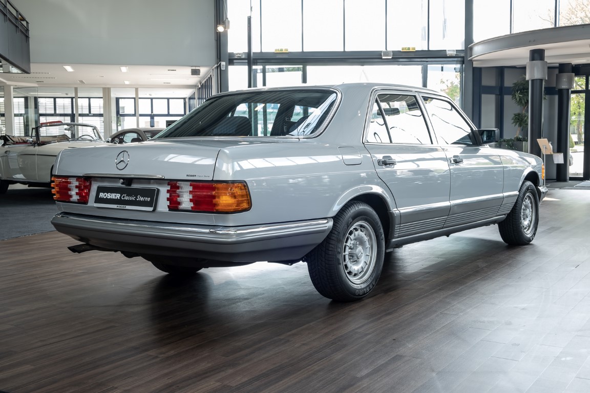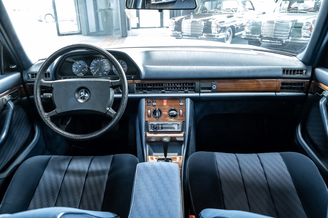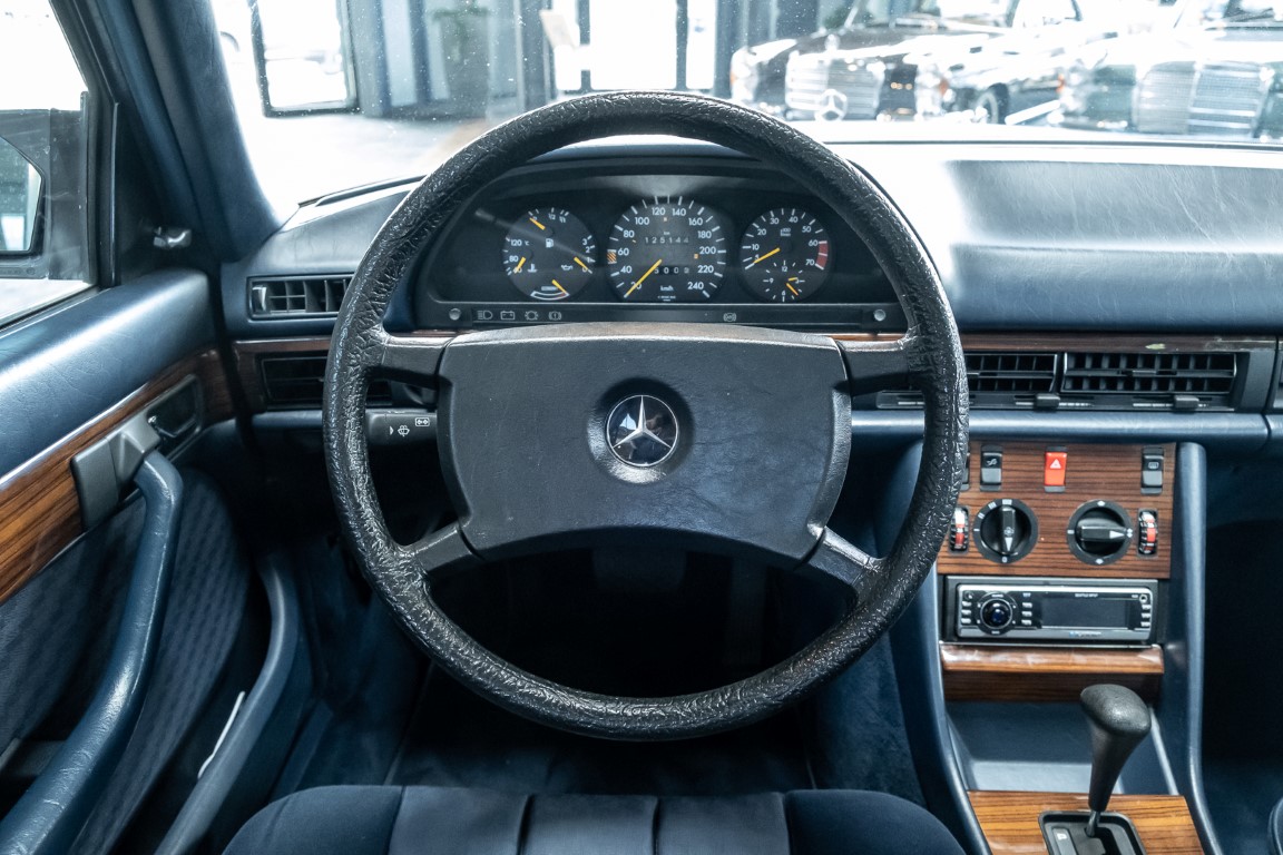 A beautiful 380 SE from the coveted 126 series in astral silver metallic in combination with a blue Interioer from the early 1983 model year is on offer. The cultivated and still bursting with power, the V8 moves the almost 1.6 tonnes unladen weight in all situations in life without any effort. The mileage is comprehensible and, according to the value appraisal, corresponds to the actual mileage. In the summer of 2019, the vehicle received a new transmission in our company. The great engine, a retrofitted KAT and the great driving folding make this 380 SE an excellent Dailydriver.