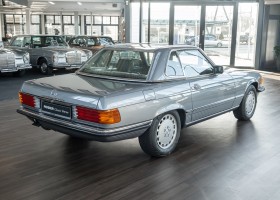 We are proud to offer you a wonderful roadster from the 107 series in the form of this 500 SL - the top SL model of the time. Skilfully this specimen in the color pearl gray metallic stands out from its brothers and sisters in silver and blue-black. In combination with the black leather this 500 knows to set itself discreetly but skillfully in scene. With a quite worth seeing equipment with limited slip differential, air conditioning and seat heating for driver and front passenger hardly desires remained open for the buyers at that time. With just over 160,000 kilometers the vehicle presents itself technically and optically in a remarkably maintained condition. The vehicle has been thoroughly checked and optimized by specialists in our workshop and has undergone major maintenance to make it fit for the upcoming season. Get in and experience the legendary SL-Class in the top model 500 SL.